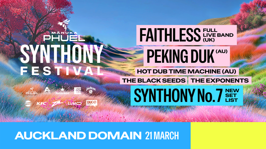 Duco Events has today revealed the first wave of artists set to take the stage at Mānuka Phuel SYNTHONY Festival, returning to the Auckland Domain on Saturday 21 March 2026. The line-up features both local and international acts Faithless (Full Live Band) (UK), SYNTHONY No. 7, Peking Duk(Australia), Hot Dub Time Machine (Australia), The Black Seeds and The Exponents.
