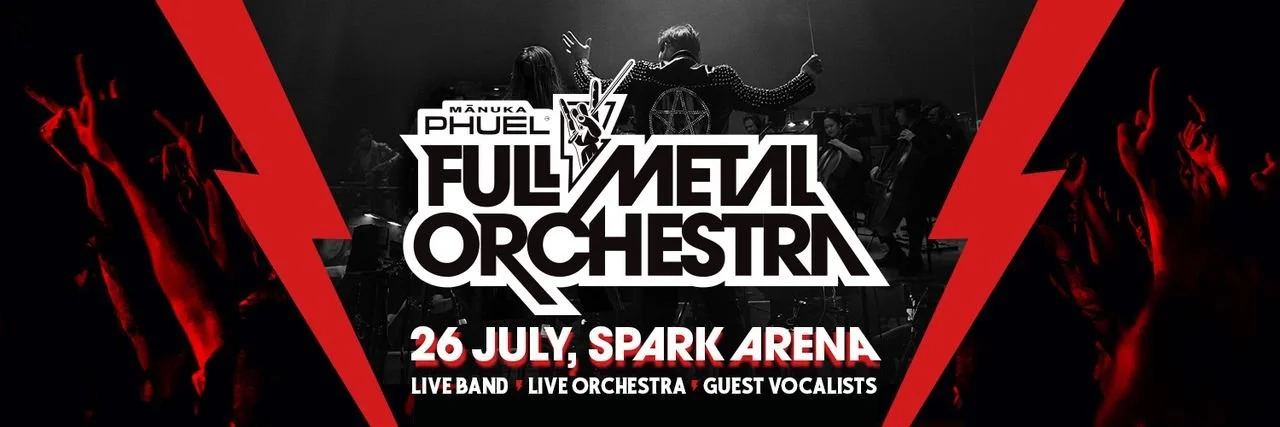 Presented by Duco Touring and Liberty Stage, Mānuka Phuel FULL METAL ORCHESTRA is a symphonic showdown where metal meets majesty. Featuring a 29-piece orchestra, 5-piece band, iconic guest vocalists, and led by conductor Sarah-Grace Williams, the show brings to life legendary tracks from Metallica, Iron Maiden, Black Sabbath, AC/DC, and more – all reimagined with soaring strings and epic visuals.