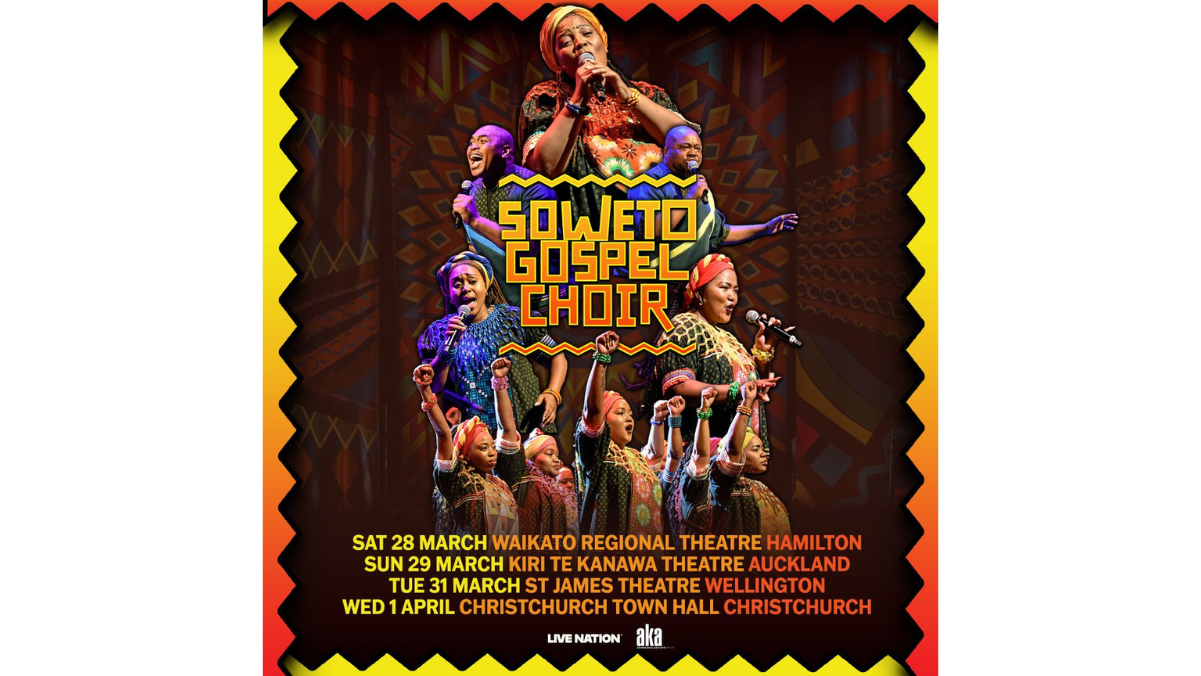 On Saturday March 28, Soweto Gospel Choir will be visiting the Waikato Regional Theatre in Kirikiriroa Hamilton before heading to the Kiri Te Kanawa Theatre in Tāmaki Makaurau Auckland on Sunday March 29, then on to Pōneke Wellington at the St James Theatre on Tuesday March 31 before ending the Aotearoa tour in Ōtautahi Christchurch at the Christchurch Town Hall on Wednesday April 1, 2026.